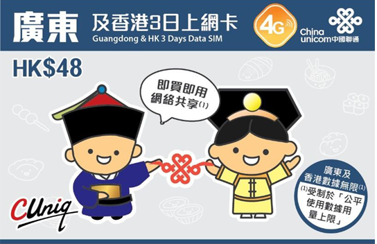 廣東及香港 3日1G 免翻牆4G LTE上網卡