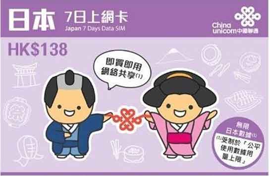 【日本7日上網卡】中國聯通3GB/7天可上FB,Line !任何手機型號均可使用。