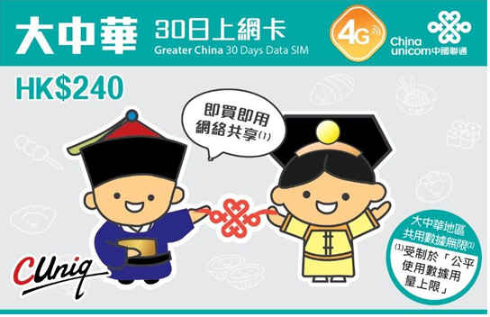 【大中華30日上網卡】中國聯通3GB/30天可直接上FB,Line !任何手機型號均可使用。
