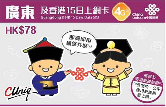 廣東及香港15日上網卡】中國聯通2GB/15天可直接上FB,Line !任何手機型號均可使用。